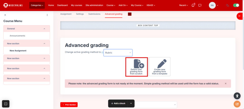 Step 8: Rubric setting (If you first time configure the rubric)