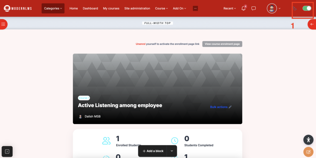 - Enable the editing mode on the respective course